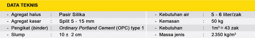 -Daya tekan sangat baik, bisa digunakan untuk lantai, dinding, dan kolom.